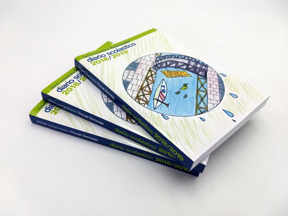 Lo scorso maggio è stato chiesto ai bambini di realizzare un disegno che avrebbe illustrato la copertina del volume. Sei le copertine finaliste, di cui una fa bella mostra di sé a colori sul fronte del diario. Le altre sono riportate all’interno in versione bi-color. Lo stemma di Milano in una goccia che inneggia all’acqua, una scuola per i pesci davanti alla pista ciclabile degli umani, il Naviglio visto dall’alto, il dettaglio di una curva del corso d’acqua.