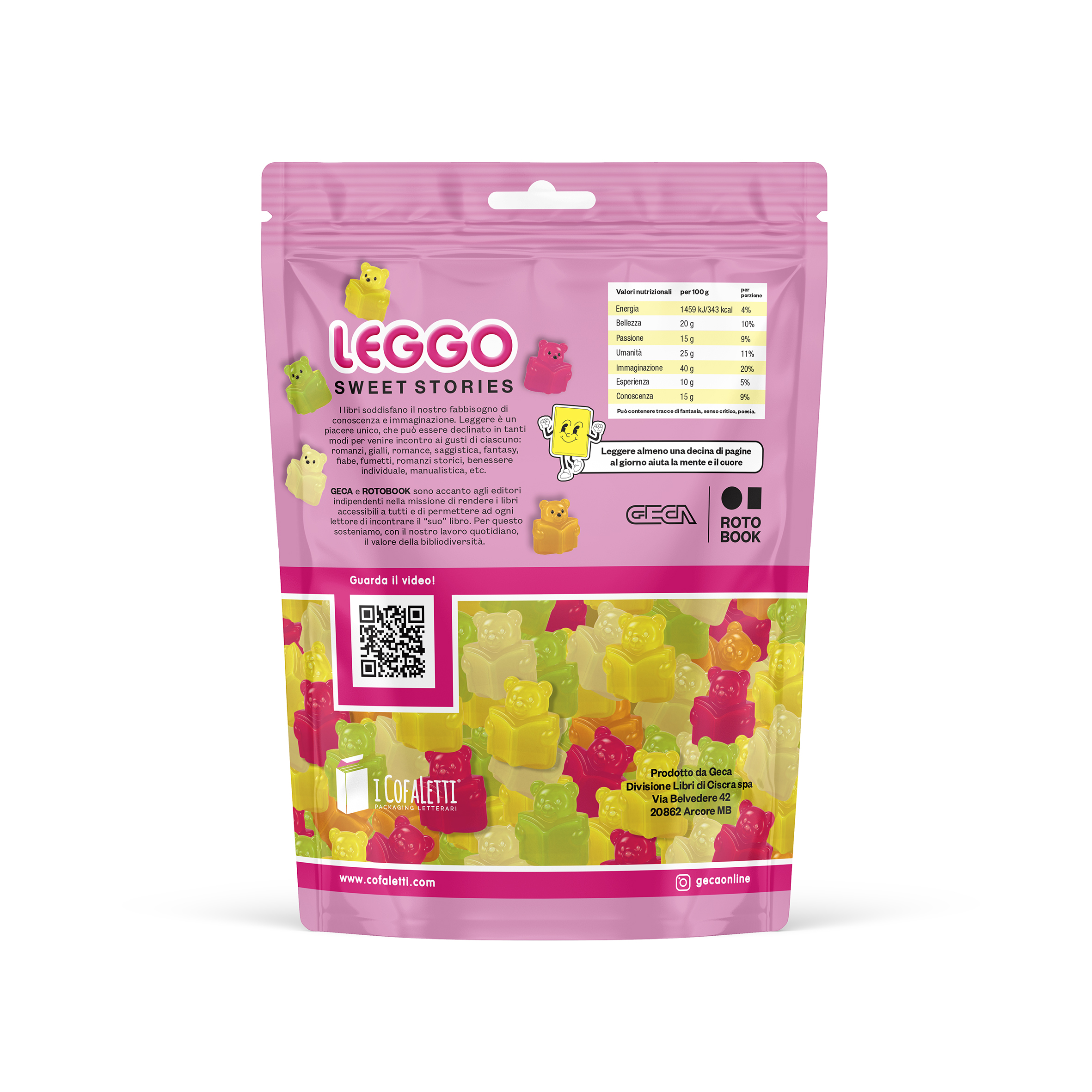 Per la prima volta abbiamo scelto un packaging flessibile, grazie alle linee di produzione di IBE e Errediesse, aziende del Gruppo Spreafin specializzata in etichette e sleeves e packaging flessibile. Una confezione che richiama immediatamente l’ìdea di dolcezza e anche di un momento di felicità con se stessi. Un packaging perfettamente coerente con la linea editoriale dei CofaLetti, che gioca con i simboli del consumo di massa applicati ai libri e all’amore per la lettura.