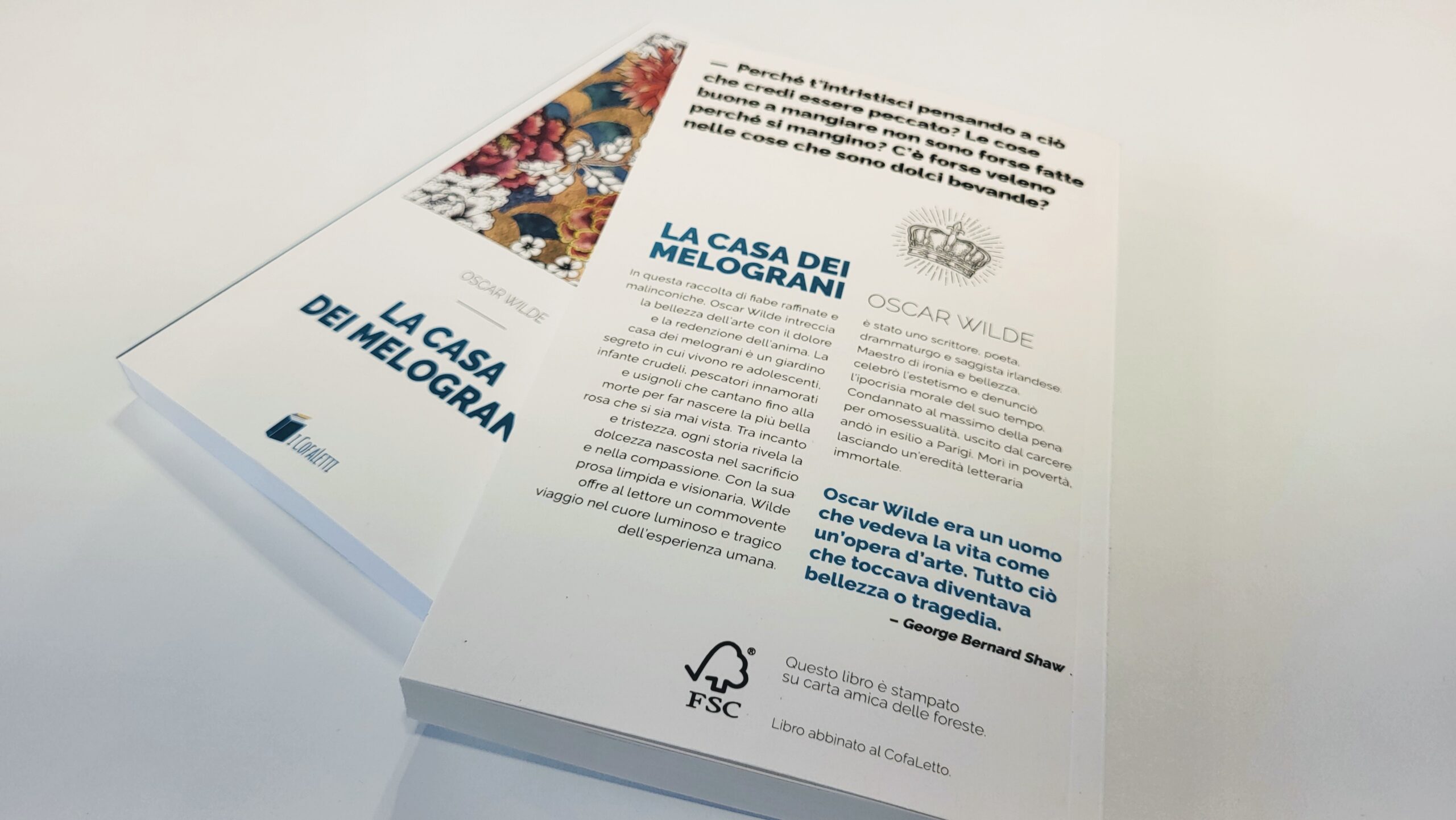 Il libro che troverete all’interno del CofaLetto Geca 2026 è La casa dei Melograni, dello scrittore irlandese Oscar Wilde. Una raccolta di fiabe raffinate e malinconiche in cui l’autore de Il ritratto di Dorian Gray intreccia la bellezza dell’arte con il dolore e la redenzione dell’anima. La casa dei melograni è un giardino segreto in cui vivono re adolescenti, infante crudeli, pescatori innamorati e usignoli che cantano fino alla morte per far nascere la più bella rosa che si sia mai vista. Tra incanto e tristezza, ogni storia rivela la dolcezza nascosta nel sacrificio e nella compassione. Con la sua prosa limpida e visionaria, Wilde offre al lettore un commovente viaggio nel cuore luminoso e tragico dell’esperienza umana.
